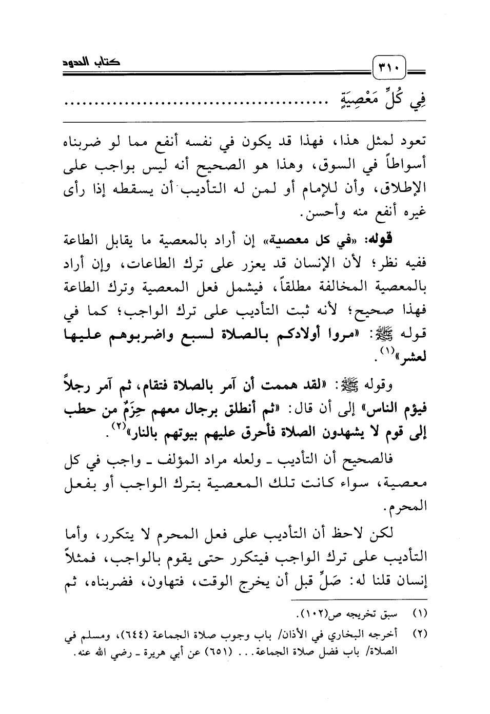 (¬2) أخرجه البخاري في الأذان باب وجوب صلاة الجماعة (644)، ومسلم في الصلاة باب فضل صلاة الجماعة ... (651) عن أبي هريرة ـ رضي الله عنه.
