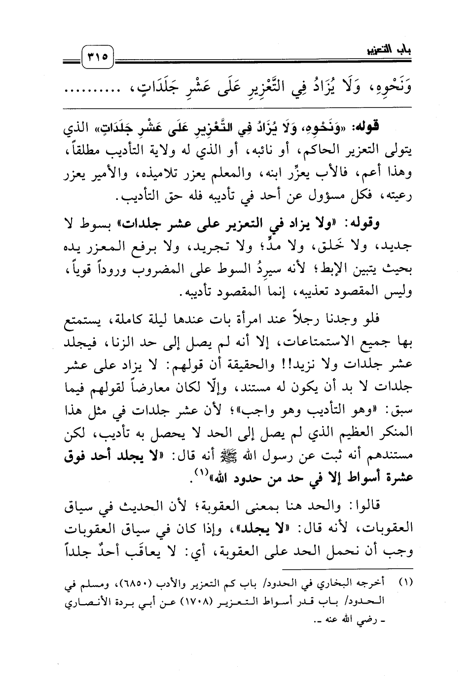 (¬1) أخرجه البخاري في الحدود باب كم التعزير والأدب (6850)، ومسلم في الحدود باب قدر أسواط التعزير (1708)