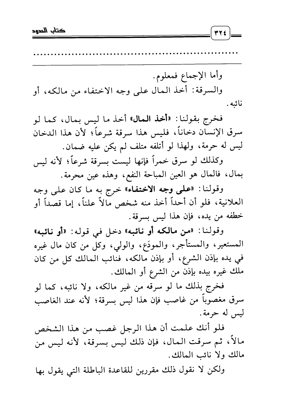 فلو أنك علمت أن هذا الرجل غصب من هذا الشخص مالاً، ثم سرقت المال، فإن ذلك ليس بسرقة، لأنه ليس من مالك ولا نائب المالك.
