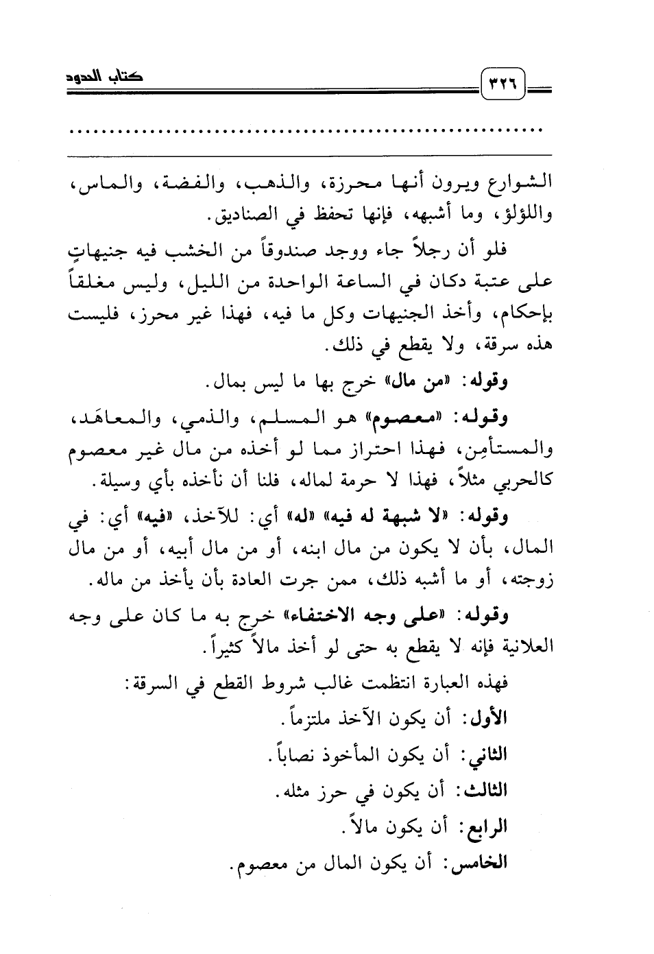 فهذه العبارة انتظمت غالب شروط القطع في السرقة: