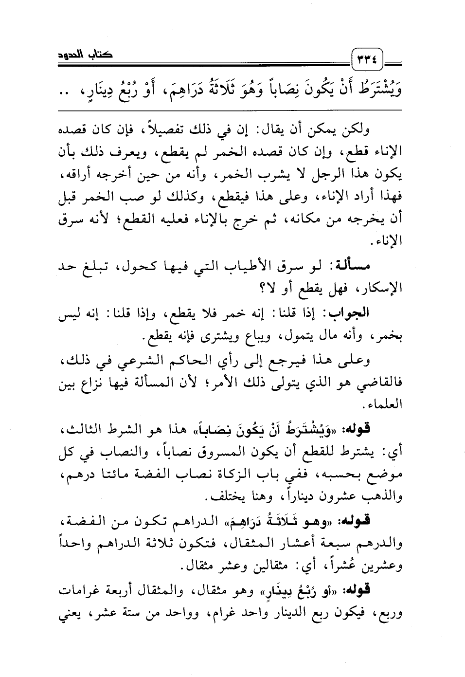قوله: «وَيُشْتَرَطُ أَنْ يَكُونَ نِصَاباً» هذا هو الشرط الثالث، أي: يشترط للقطع أن يكون المسروق نصاباً، والنصاب في كل موضع بحسبه، ففي باب الزكاة نصاب الفضة مائتا درهم، والذهب عشرون ديناراً، وهنا يختلف.