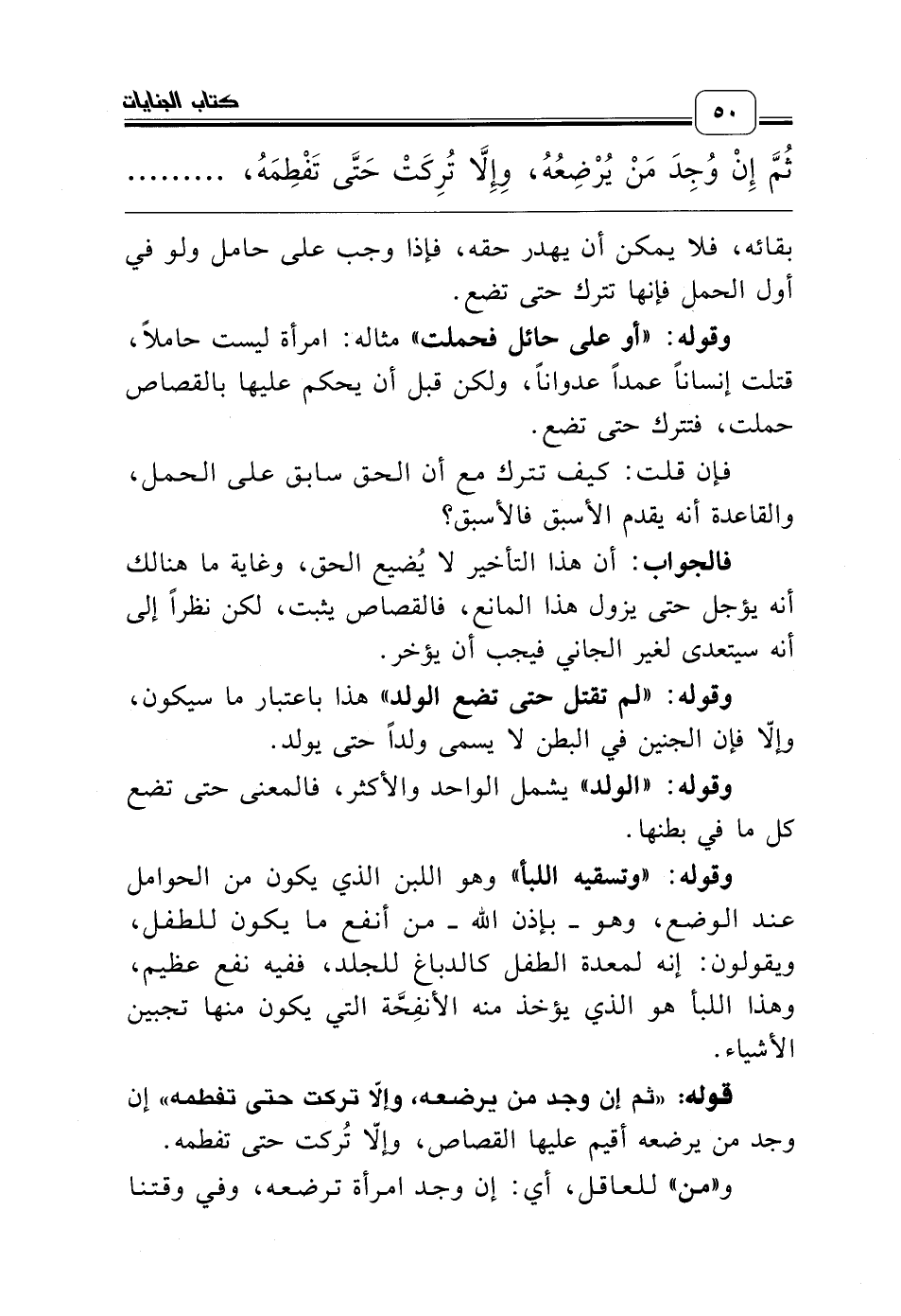 قوله: «ثم إن وجد من يرضعه، وإلاّ تركت حتى تفطمه» إن وجد من يرضعه أقيم عليها القصاص، وإلاّ تُركت حتى تفطمه.