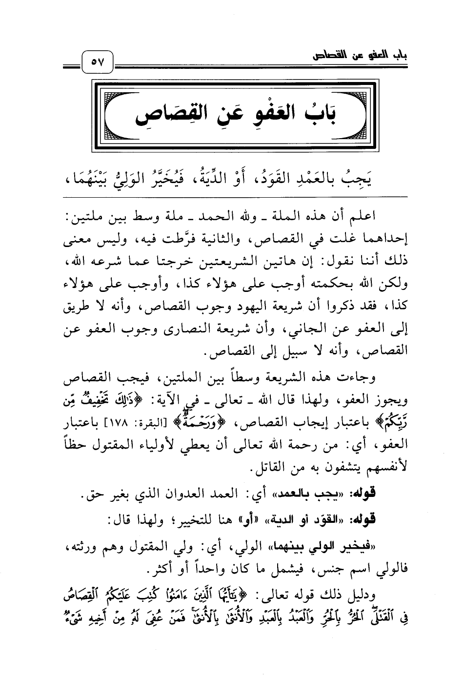 بَابُ العَفْوِ عَنِ القِصَاصِ