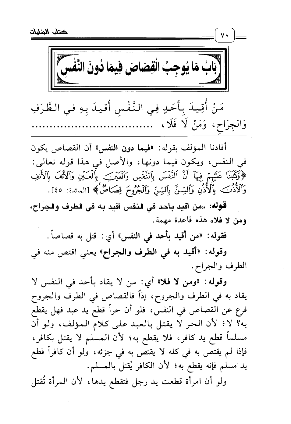 قوله: «من أقيد بأحد في النفس أقيد به في الطرف والجراح، ومن لا فلا» هذه قاعدة مهمة.