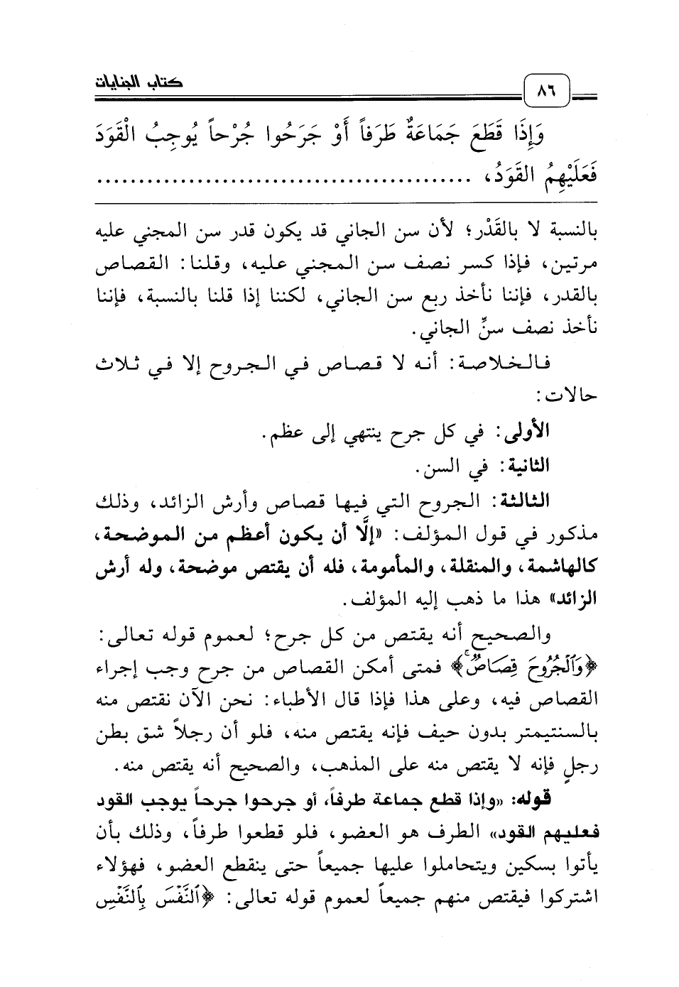 قوله: «وإذا قطع جماعة طرفاً، أو جرحوا جرحاً يوجب القود فعليهم القود» الطرف هو العضو، فلو قطعوا طرفاً، وذلك بأن يأتوا بسكين ويتحاملوا عليها جميعاً حتى ينقطع العضو، فهؤلاء اشتركوا فيقتص منهم جميعاً لعموم قوله تعالى: {النَّفْسَ بِالنَّفْسِ