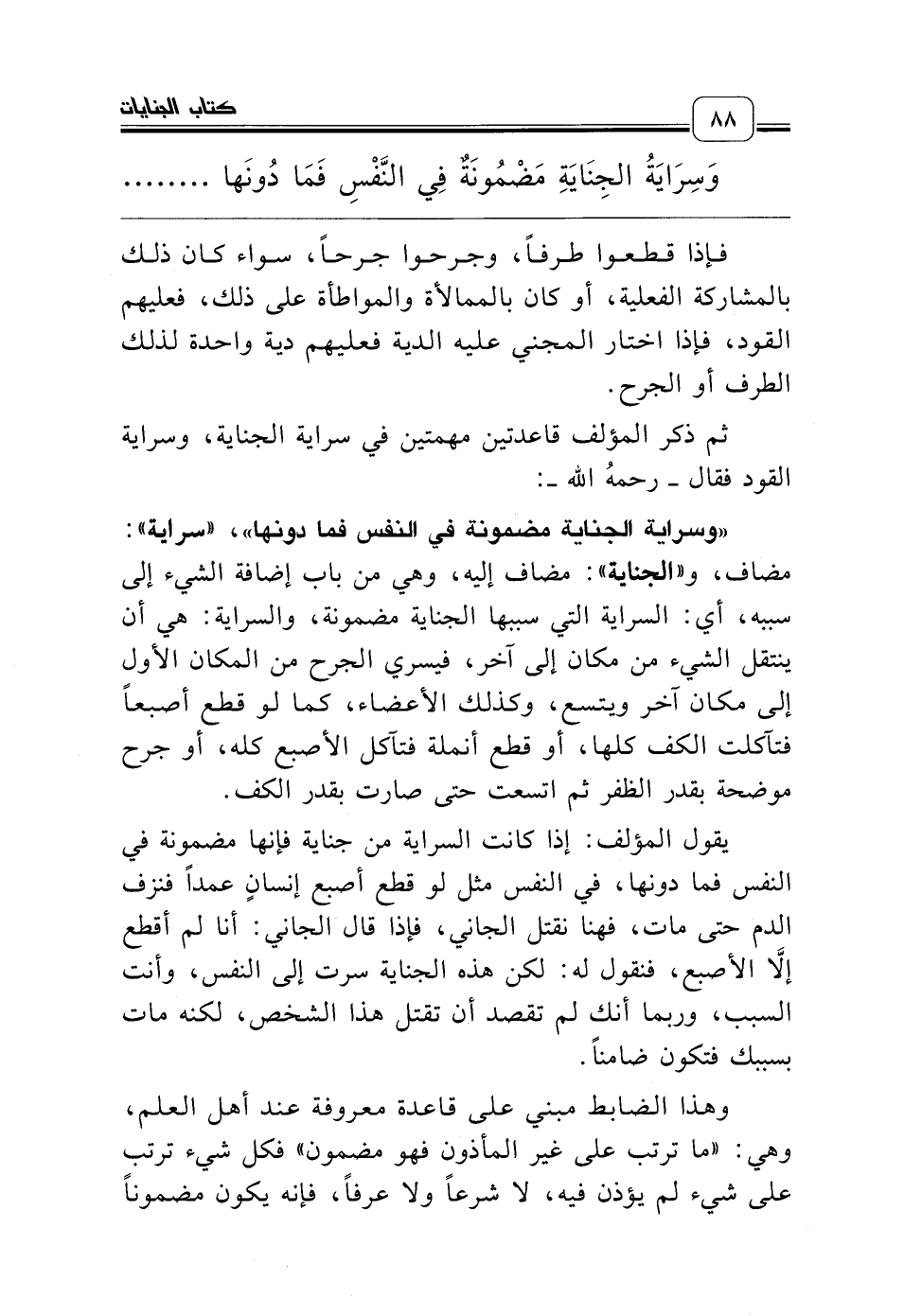 ثم ذكر المؤلف قاعدتين مهمتين في سراية الجناية، وسراية القود فقال ـ رحمه الله ـ: