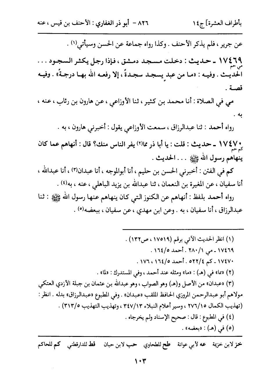 17469 - حديث (مي حم) : دخلت مسجد دمشق، فإذا رجل يكثر السجود ... الحديث. وفيه: "ما من عبد يسجد سجدة، إلا رفعه الله بها درجةً". وفيه قصة.
