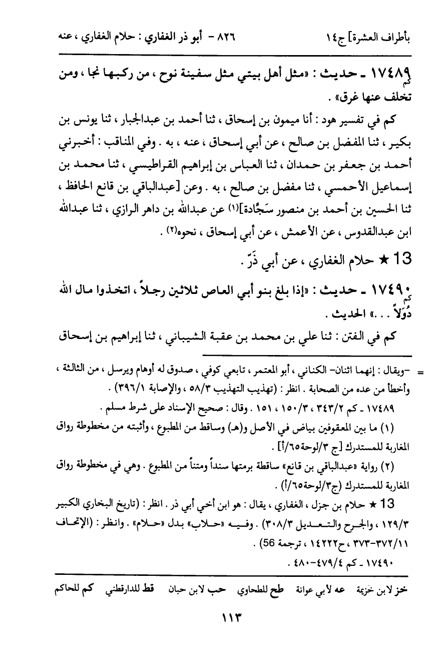 17489 - حديث (كم) : "مثل أهل بيتي مثل سفينة نوح، من ركبها نجا، ومن تخلف عنها غرق".