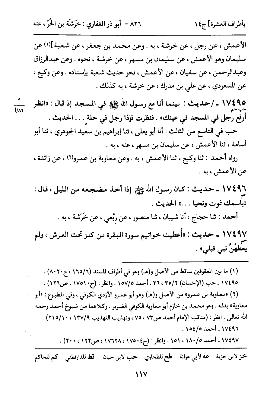 -[118]- أحمد: ثنا حجاج، ثنا شيبان، ثنا منصور، عن ربعي، عنه أو عن المعرور، عن أبي ذر، بهذا. وعن حسين، عن شيبان، به. وعن جرير، عن منصور، عن ربعي، عمن حدثه، عن أبي ذَر، ولم يسمه.