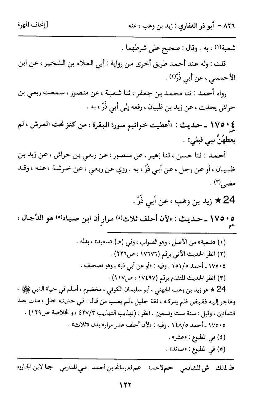 أحمد: ثنا حسن، ثنا زهير، عن منصور، عن ربعي بن حراش، عن زيد بن ظبيان، أو عن رجل، عن أبي ذَر، به. روي عن ربعي، عن خرشة، عنه، وقد مضى.