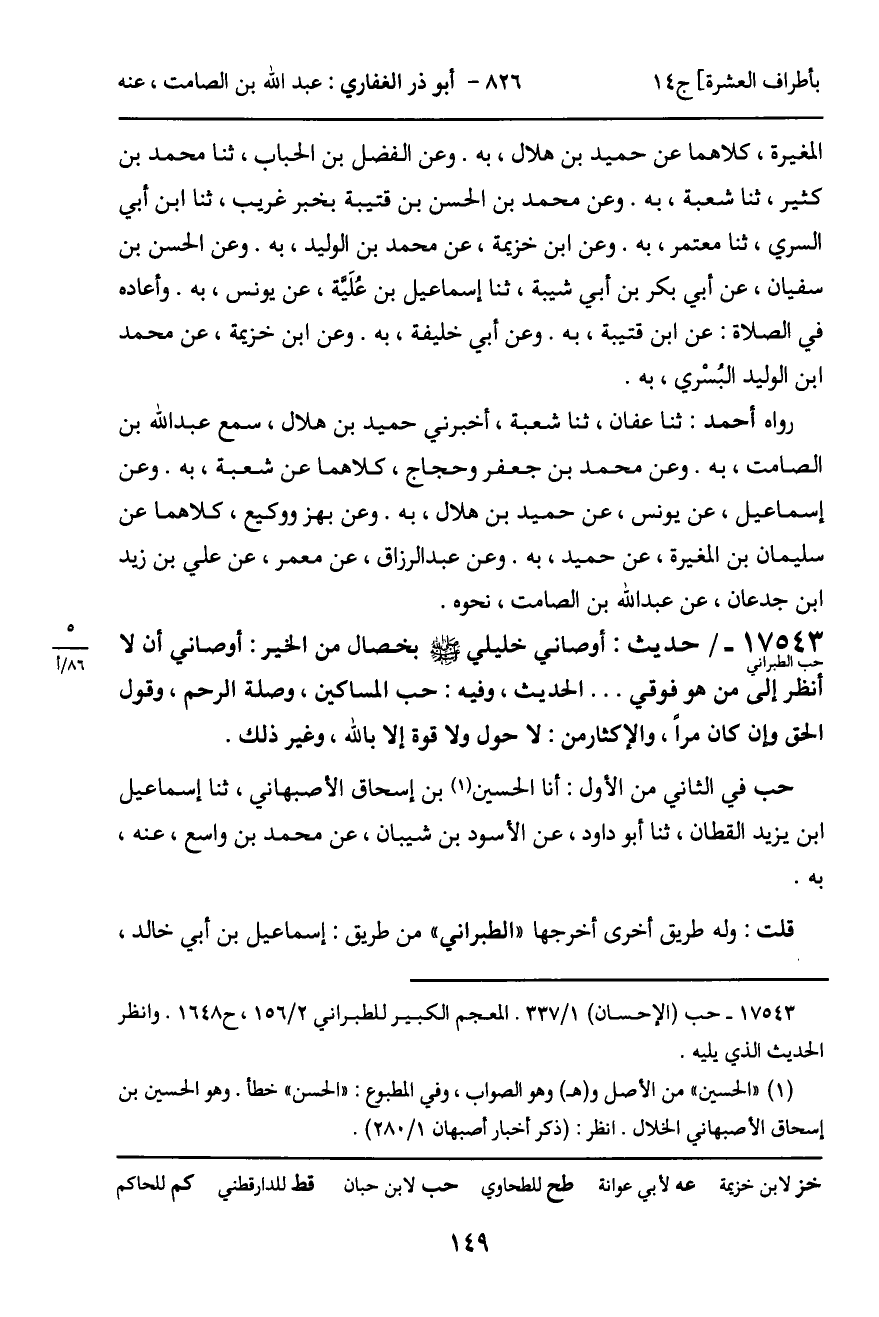 -[150]- عن بديل بن مَيْسرة، عن عبد الله بن الصامت، نحوه.