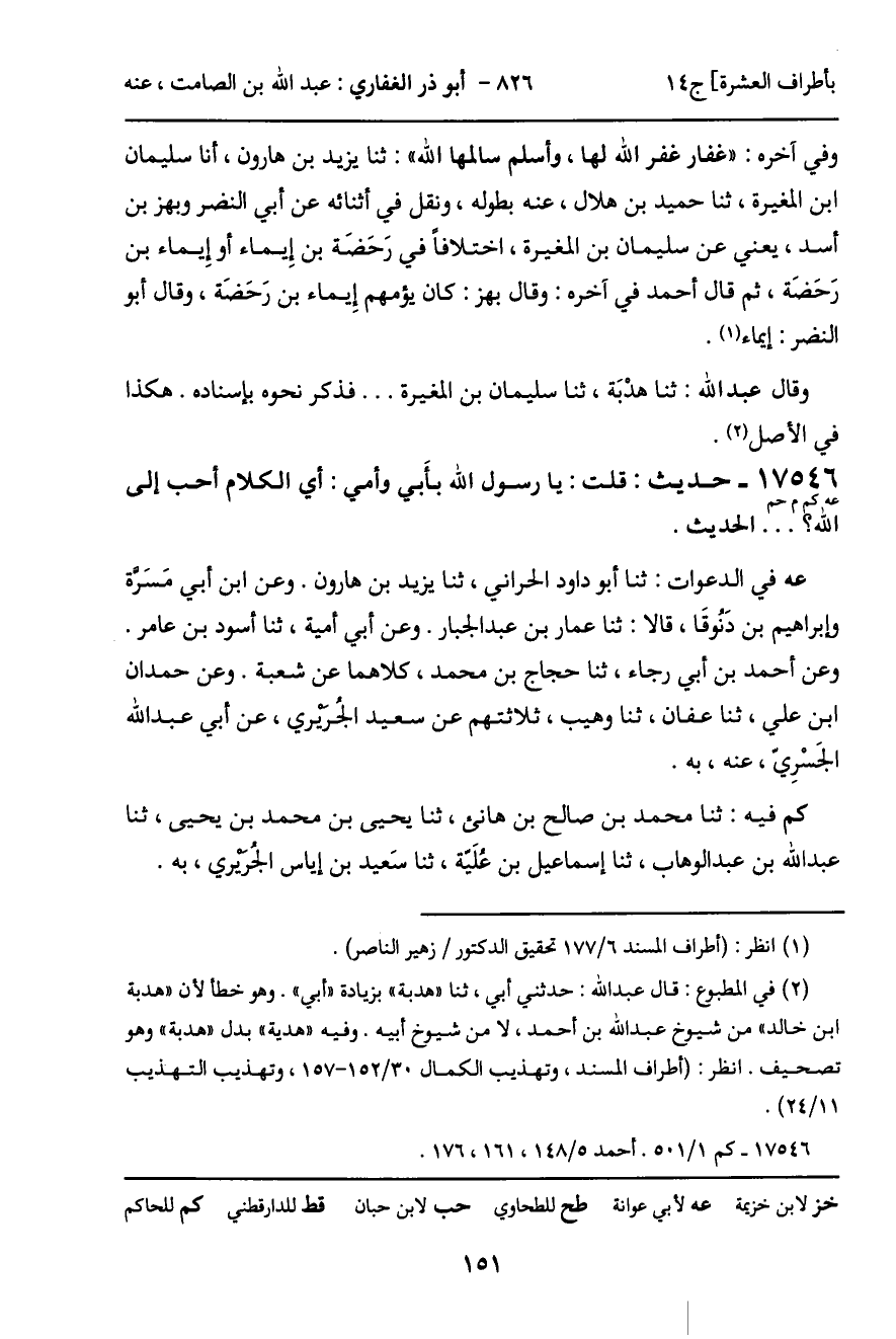 17546 - حديث (عه كم م حم) : قلت: يا رسول الله بأبي وأمي: أي الكلام أحب إلى الله؟ ... الحديث.