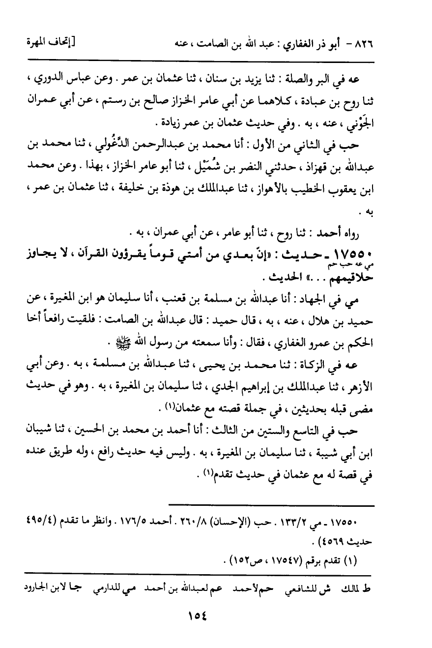 17550 - حديث (مي عه حب حم) : "إنّ بعدي من أمتي قوماً يقرؤون القرآن، لا يجاوز حلاقيمهم ... " الحديث.
