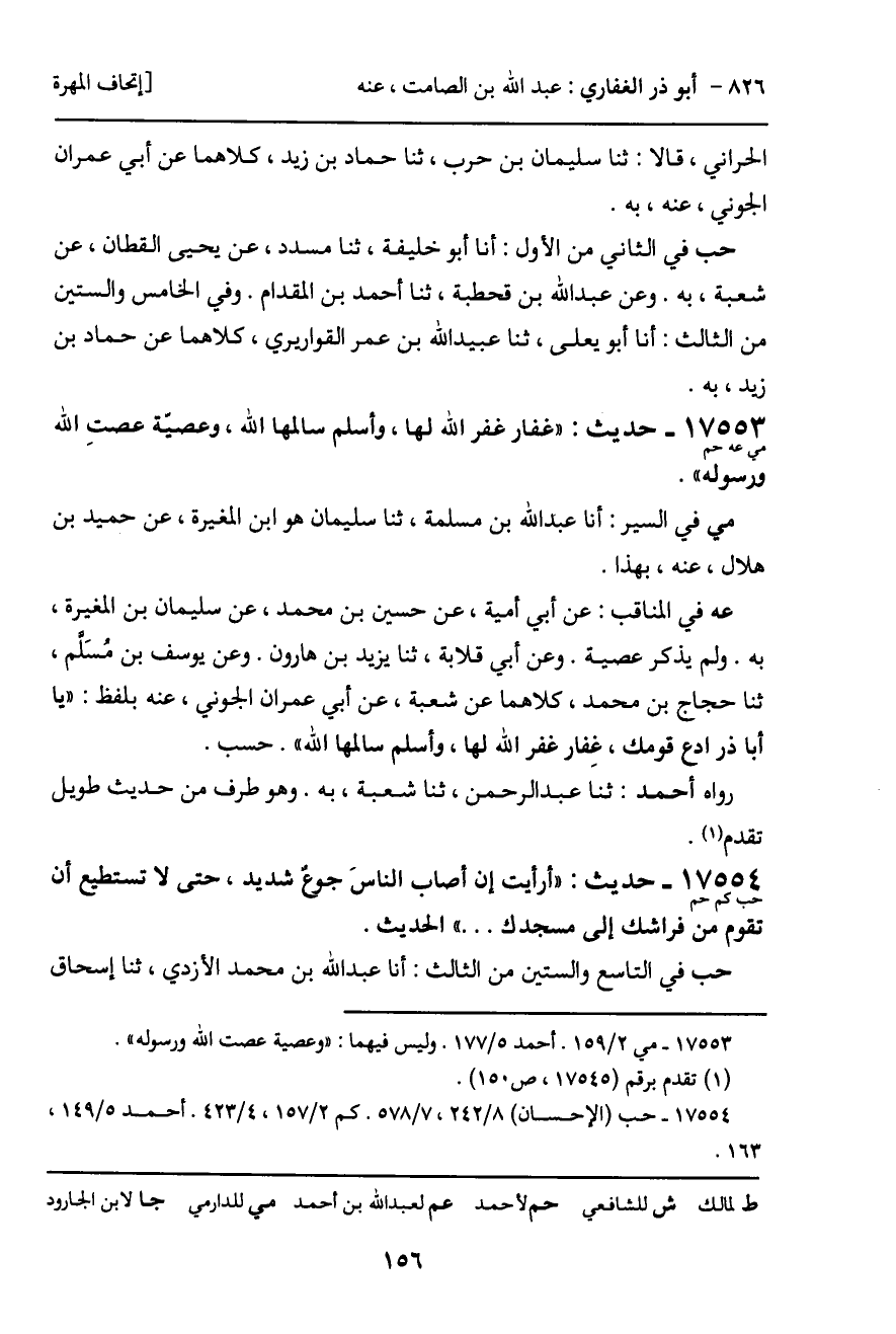 -[157]- ابن إبراهيم، أنا مرحوم بن عبد العزيز، ثنا أبو عمران الجوني، عنه، به. وفيه: عن الحسن بن سفيان، ثنا حبان بن موسى، أنا عبد الله، أنا حماد بن سلمة، عن أبي عمران، نحوه.