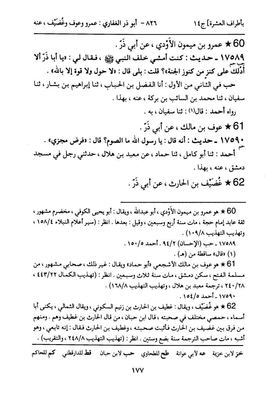 17589 - حديث (حب حم) : كنت أمشي خلف النبي - صَلَّى اللَّهُ عَلَيْهِ وَسَلَّمَ -، فقال لي: "يا أبا ذَرّ ألا أدلك على كنز من كنوز الجنة"؟ قلت: بلى قال: "لا حول ولا قوة إلا بالله".