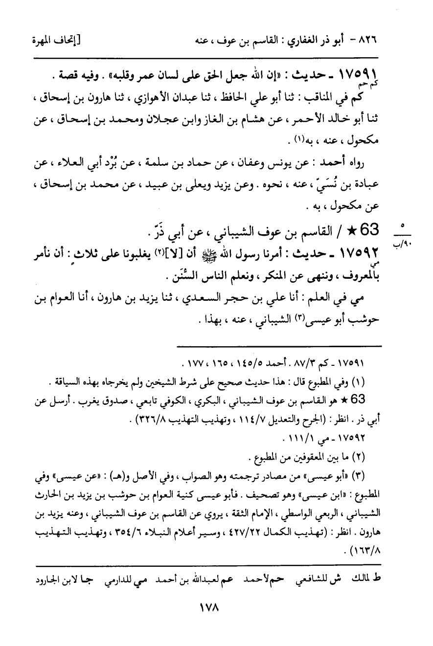 مي في العلم: أنا علي بن حجر السعدي، ثنا يزيد بن هارون، أنا العوام بن حوشب أبو عيسى الشيباني، عنه، بهذا.