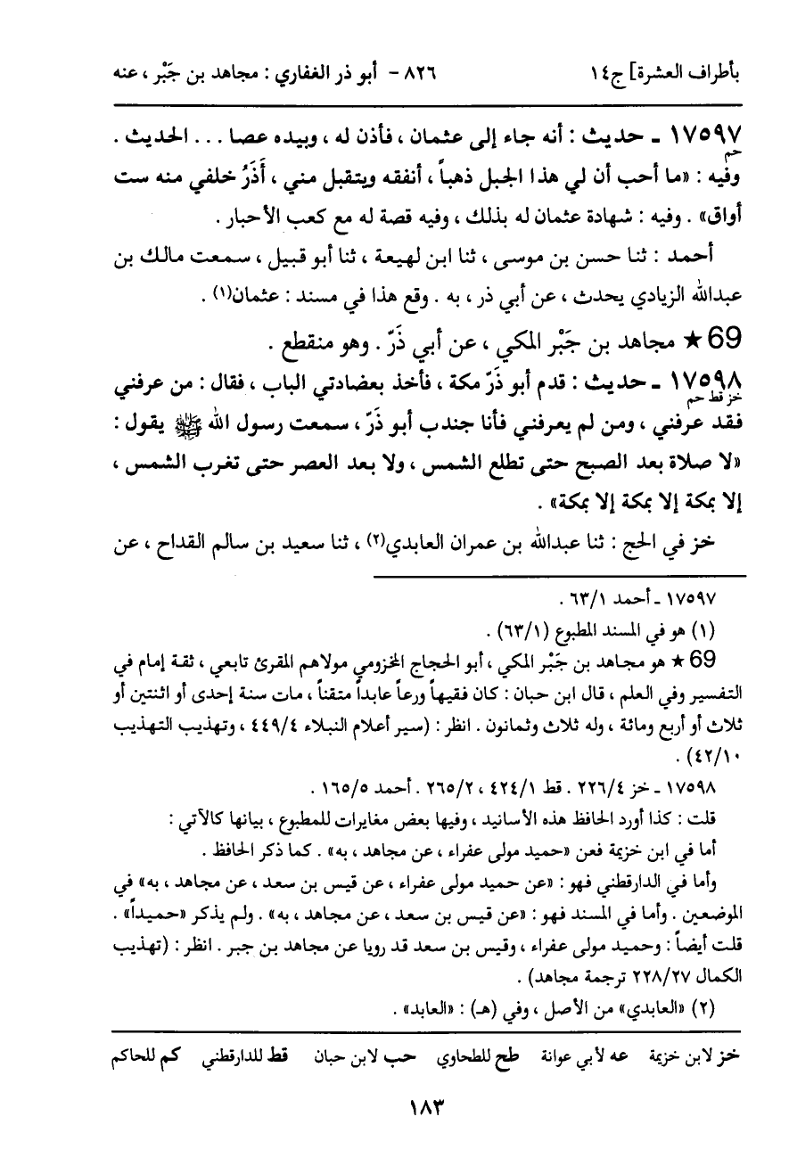 -[184]- عبد الله بن المؤمل، عن حميد مولى عفراء، عن مجاهد، به. قال ابن خزيمة: أنا أشك في سماع مجاهد من أبي ذر.