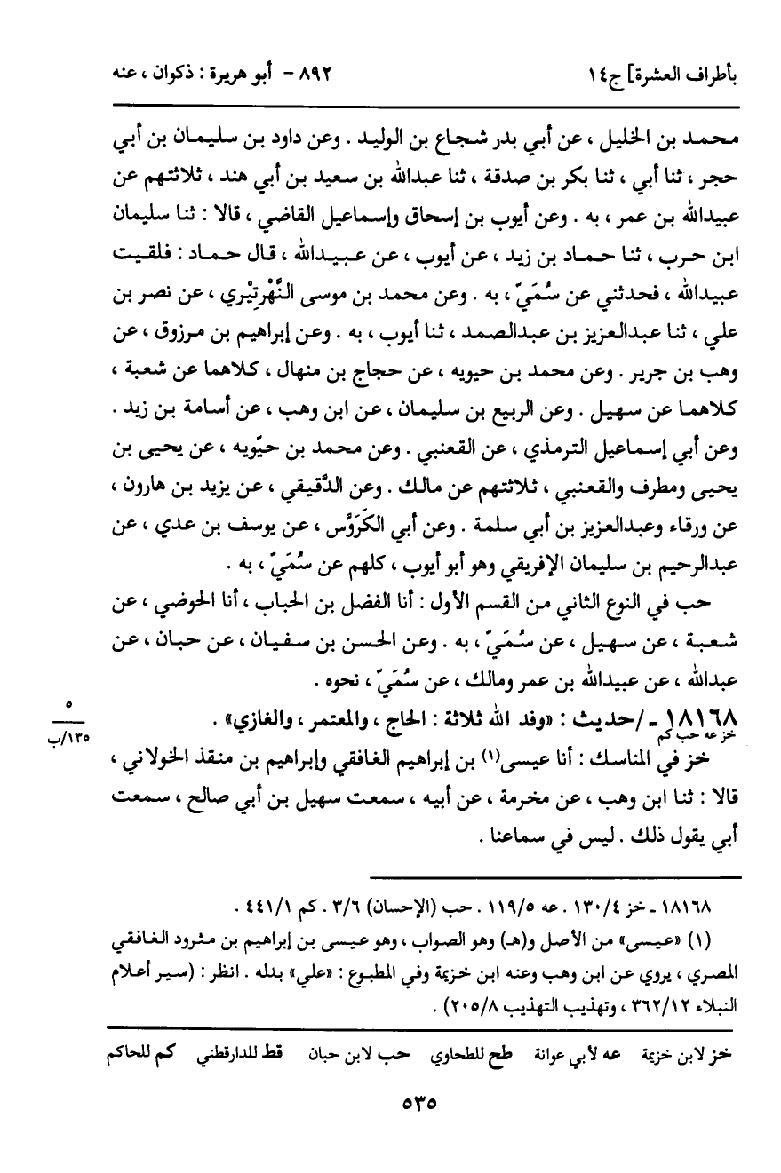 خز في المناسك: أنا عيسى بن إبراهيم الغافقي وإبراهيم بن منقذ الخولاني، قالا: ثنا ابن وهب، عن مخرمة، عن أبيه، سمعت سهيل بن أبي صالح، سمعت أبي يقول ذلك. ليس في سماعنا.