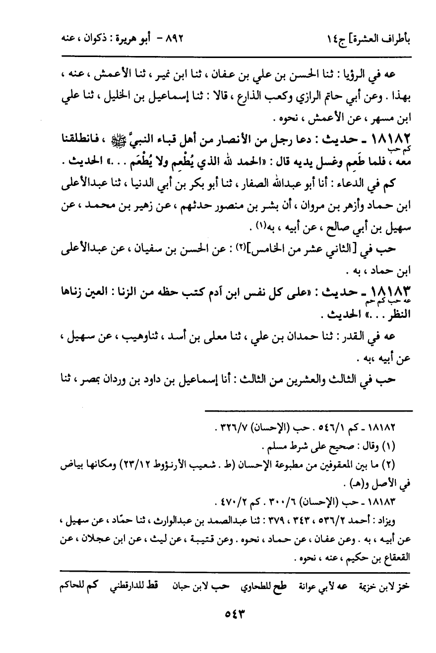 حب في [الثاني عشر من الخامس] : عن الحسن بن سفيان، عن عبد الأعلى ابن حماد، به.