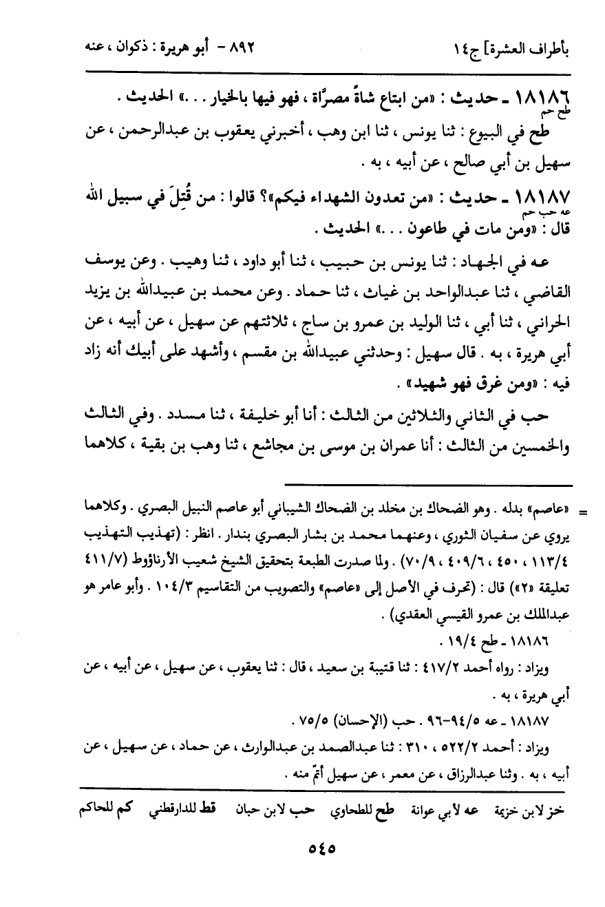 طح في البيوع: ثنا يونس، ثنا ابن وهب، أخبرني يعقوب بن عبد الرحمن، عن سهيل بن أبي صالح، عن أبيه، به.