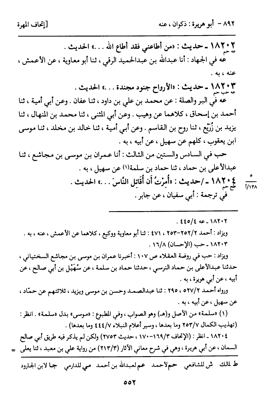 عه في البر والصلة: عن محمد بن علي بن داود، ثنا عفان. وعن أبي أمية، ثنا أحمد بن إسحاق، كلاهما عن وهيب. وعن أبي المثنى، ثنا محمد بن المنهال، ثنا يزيد بن زُريع، ثنا روح بن القاسم. وعن أبي أمية، ثنا خالد بن مخلد، ثنا موسى ابن يعقوب، كلهم عن سهيل، عن أبيه، به.