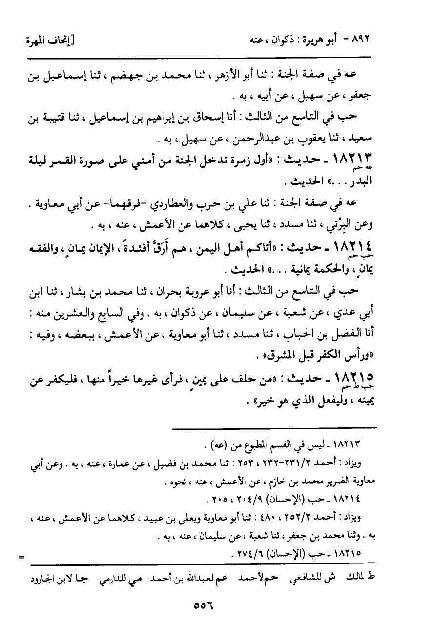 حب في التاسع من الثالث: أنا أبو عروبة بحران، ثنا محمد بن بشار، ثنا ابن أبي عدي، عن شعبة، عن سليمان، عن ذكوان، به. وفي السابع والعشرين منه: أنا الفضل بن الحباب، ثنا مسدد، ثنا أبو معاوية، عن الأعمش، ببعضه، وفيه: "ورأس الكفر قبل المشرق".