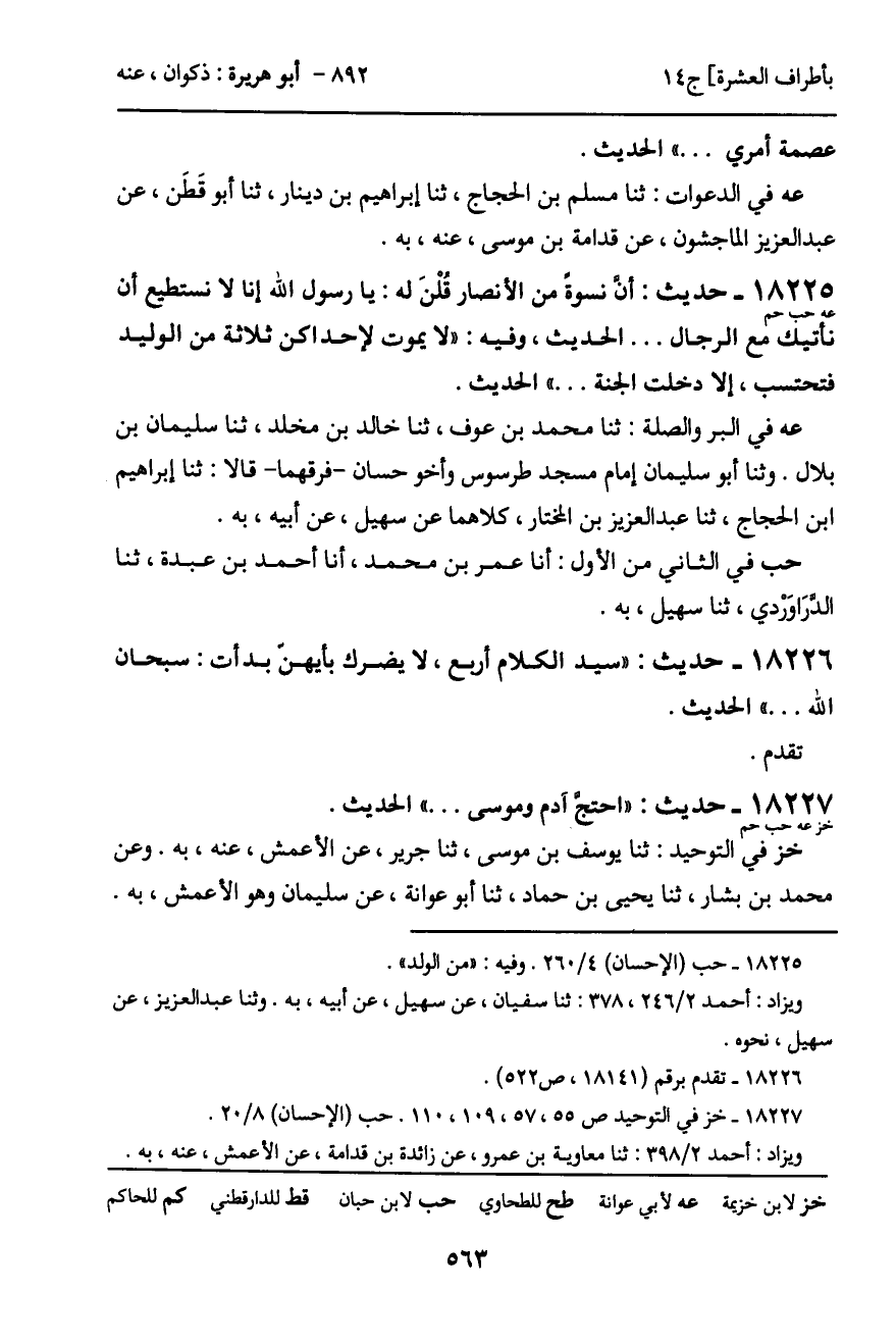 18227 - حديث (خز عه حب حم) : "احتج آدم وموسى ... " الحديث.