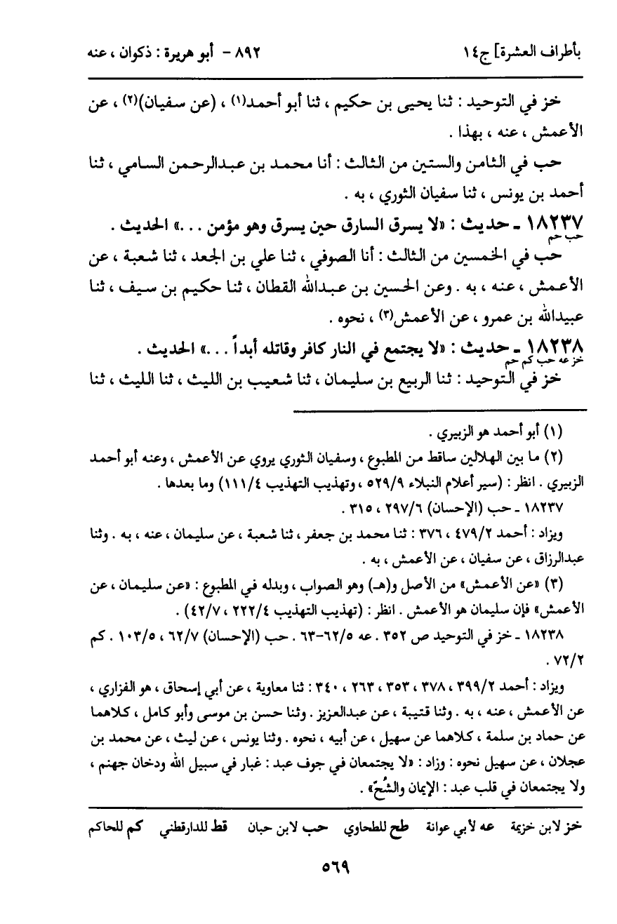 18237 - حديث (حب حم) : "لا يسرق السارق حين يسرق وهو مؤمن ... " الحديث.
