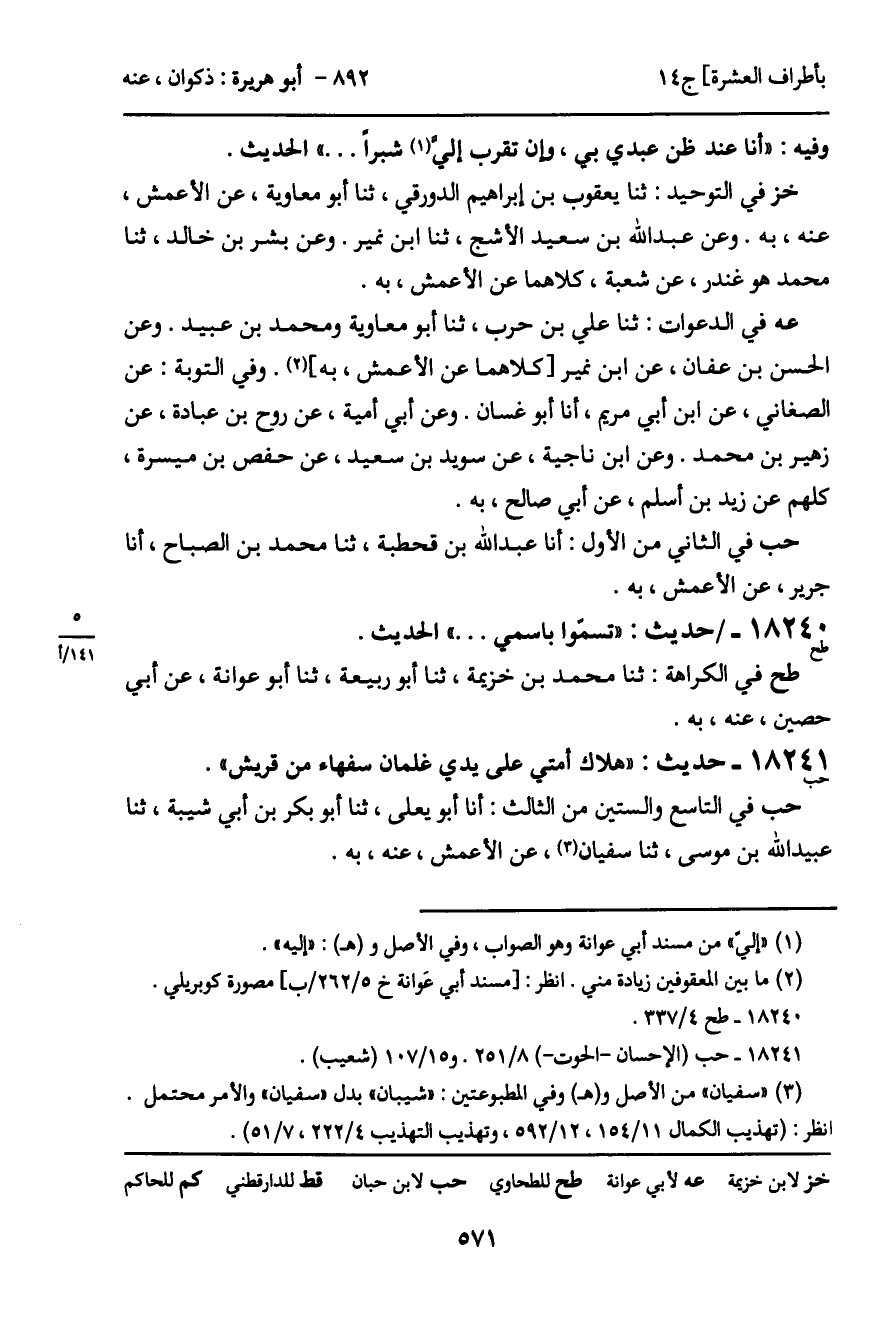 18241 - حديث (حب) : "هلاك أمتي على يدي غلمان سفهاء من قريش".
