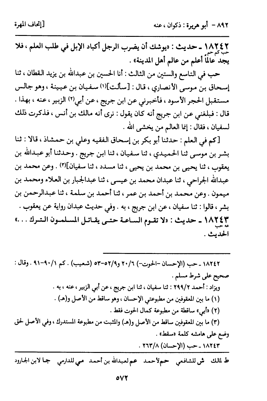 18243 - حديث (عه حب) : "لا تقوم الساعة حتى يقاتل المسلمون الترك ... " الحديث.