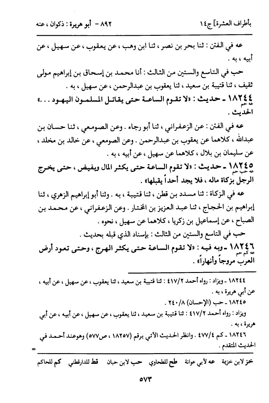 18244 - حديث (عه حم) : "لا تقوم الساعة حتى يقاتل المسلمون اليهود ... " الحديث.