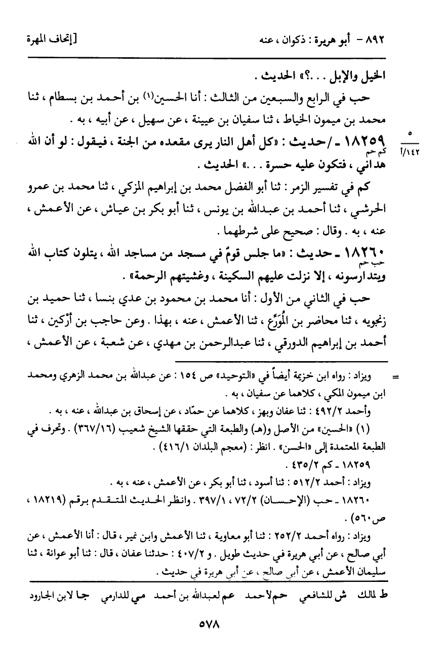 18260 - حديث (حب حم) : "ما جلس قوم في مسجد من مساجد الله، يتلون كتاب الله ويتدارسونه، إلا نزلت عليهم السكينة، وغشيتهم الرحمة".