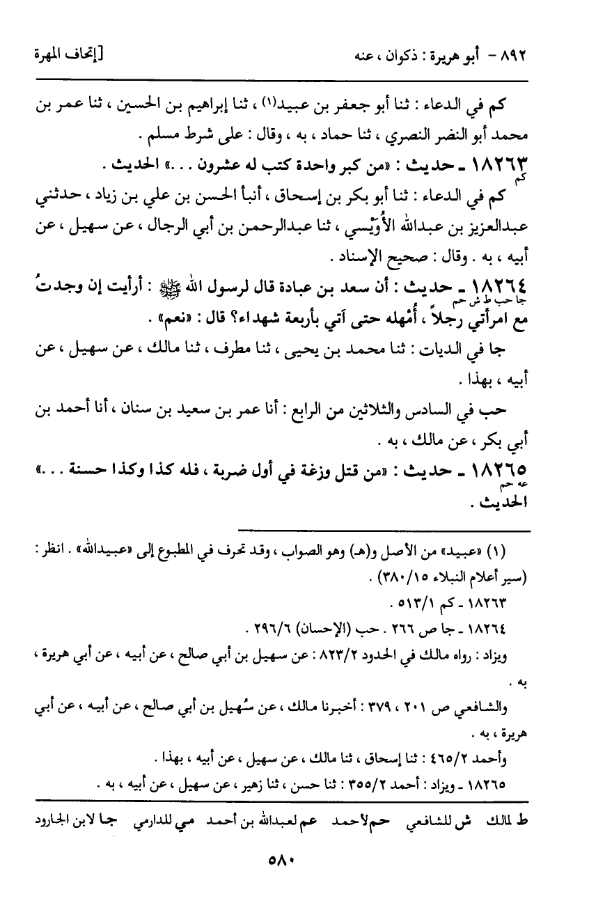 كم في الدعاء: ثنا أبو بكر بن إسحاق، أنبأ الحسن بن علي بن زياد، حدثني عبد العزيز بن عبد الله الأُويسي، ثنا عبد الرحمن بن أبي الرجال، عن سهيل، عن أبيه، به. وقال: صحيح الإسناد.