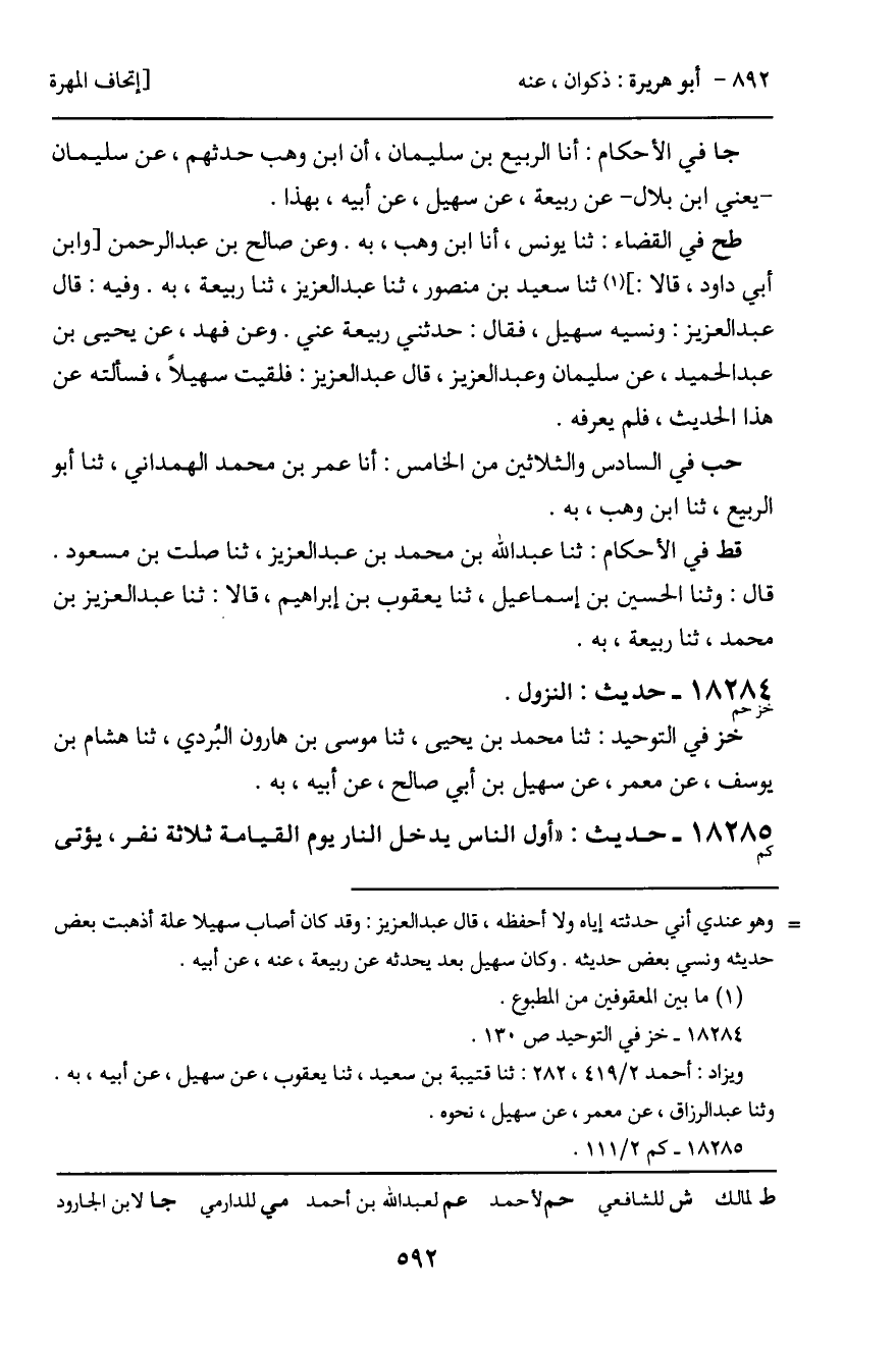 خز في التوحيد: ثنا محمد بن يحيى، ثنا موسى بن هارون البردي، ثنا هشام بن يوسف، عن معمر، عن سهيل بن أبي صالح، عن أبيه، به.
