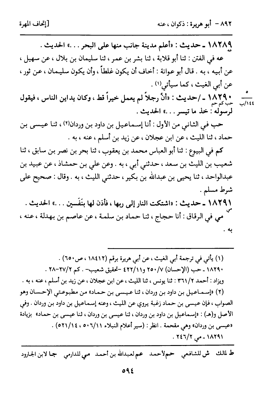 عه في الفتن: ثنا أبو قلابة، ثنا بشر بن عمر، ثنا سليمان بن بلال، عن سهيل، عن أبيه، به. قال أبو عوانة: أخاف أن يكون غلطاً، وأن يكون سليمان، عن ثور، عن أبي الغيث، كما سيأتي.