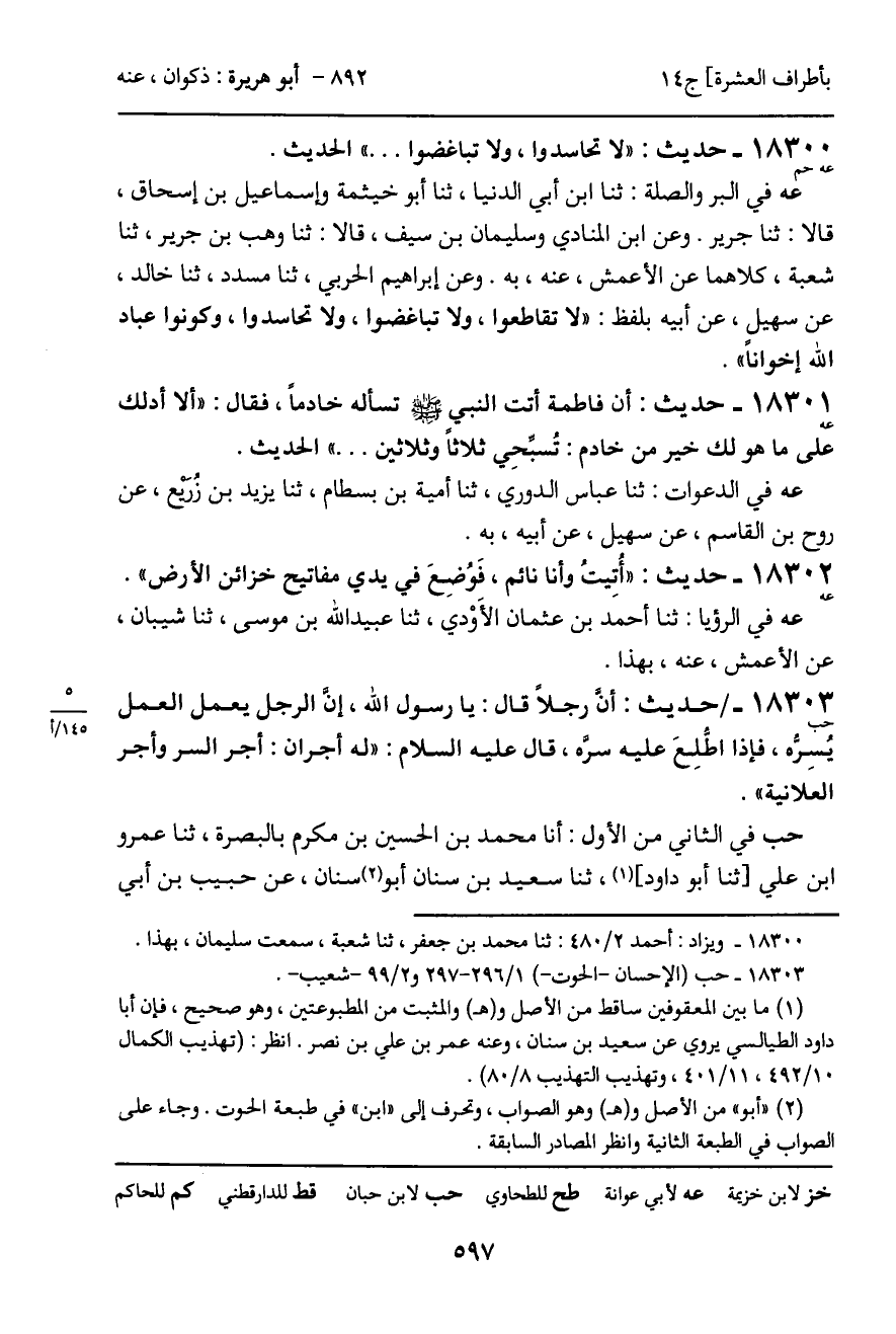 18300 - حديث (عه حم) : "لا تحاسدوا، ولا تباغضوا ... " الحديث.