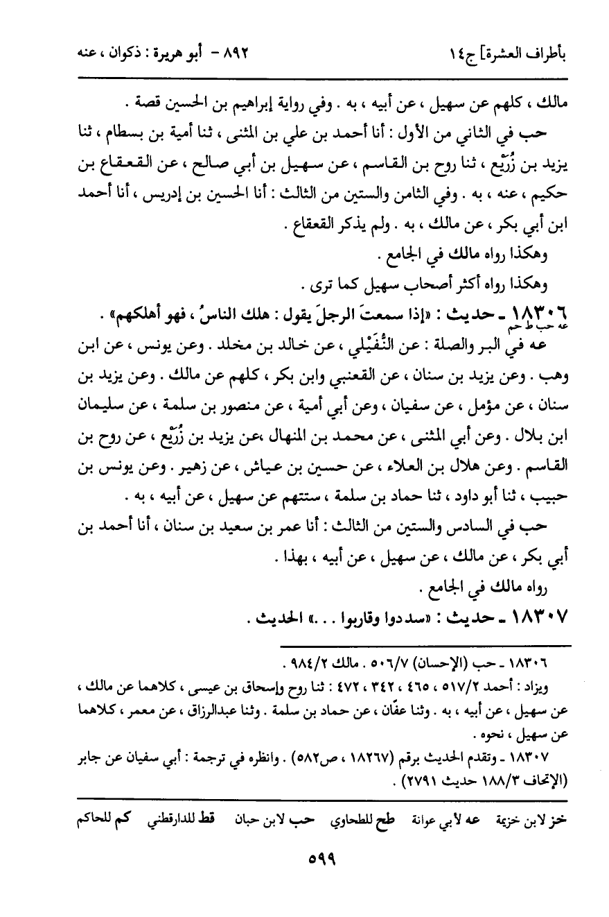 18306 - حديث (عه حب ط حم) : "إذا سمعتَ الرجل يقول: هلك الناسُ، فهو أهلكهم".