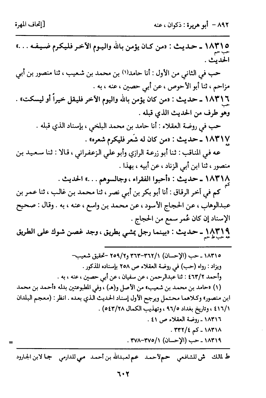 حب في روضة العقلاء: أنا حامد بن محمد البلخي، بإسناد الذي قبله.