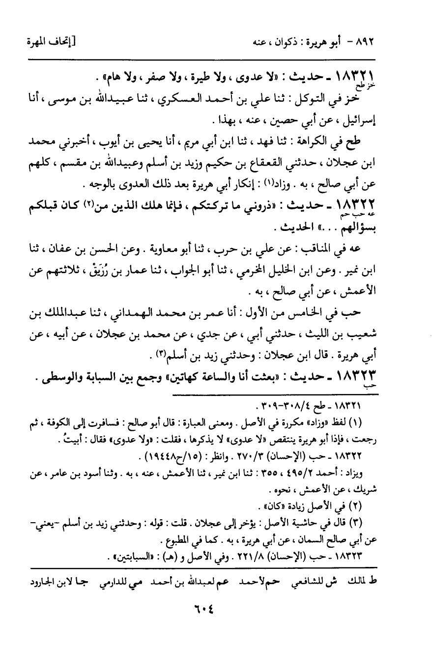 18321 - حديث (خز طح) : "لا عدوى، ولا طيرة، ولا صفر، ولا هام".