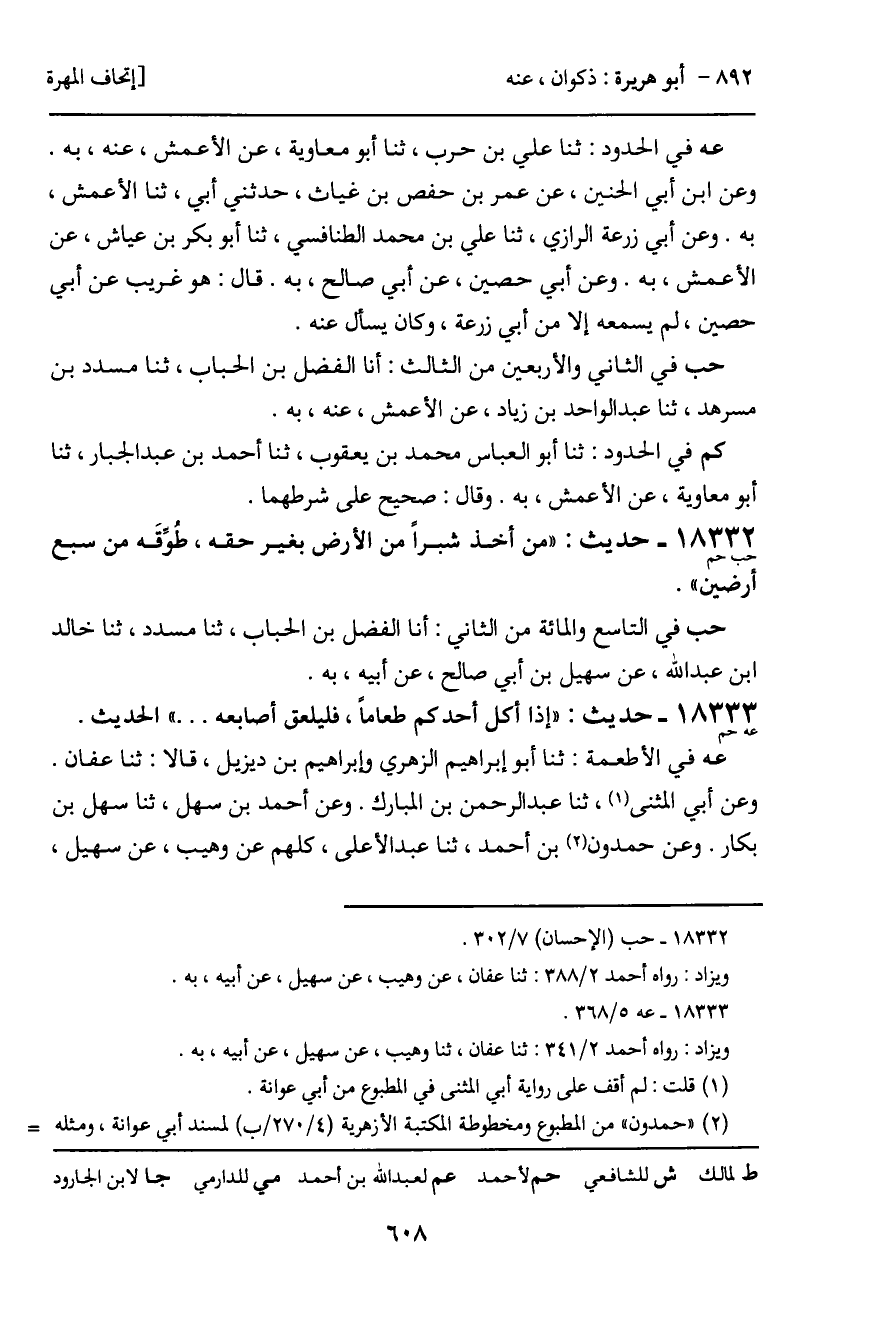 18332 - حديث (حب حم) : "من أخذ شبراً من الأرض بغير حقه، طوِّقَه من سبع أرضين".