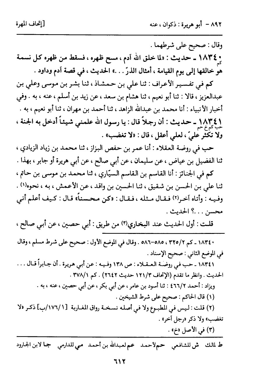 حب في روضة العقلاء: أنا عمر بن حفص البزاز، ثنا محمد بن زياد الزيادي، ثنا الفضيل بن عياض، عن سليمان، عن أبي صالح، عن أبي هريرة أو جابر، بهذا.