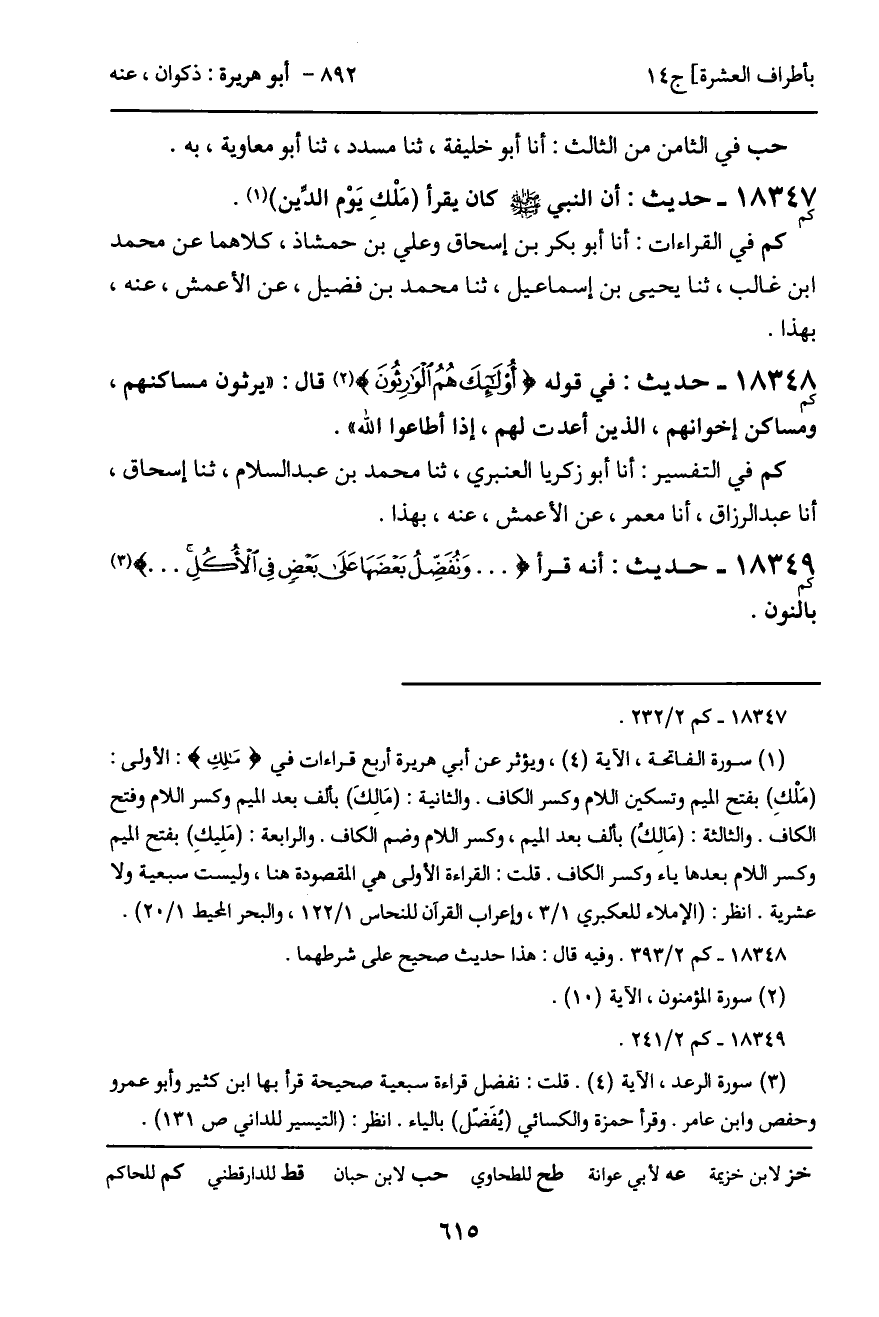 18347 - حديث (كم) : أن النبي - صَلَّى اللَّهُ عَلَيْهِ وَسَلَّمَ - كان يقرأ (مَلْكِ يَوْم الدِّين) .