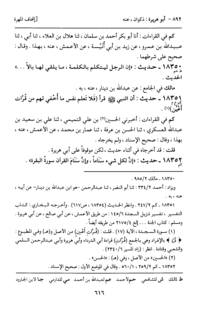 18352 - حديث (كم) : "إن لكل شيء سَنَاماً، وإن سنًامَ القرآن سورةُ البقرة".