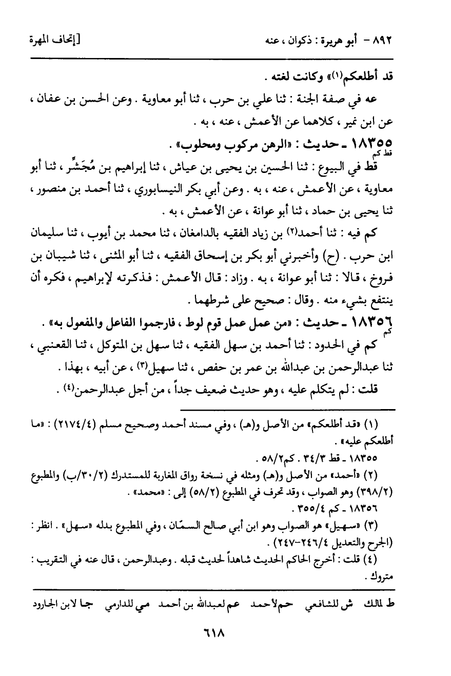 كم في الحدود: ثنا أحمد بن سهل الفقيه، ثنا سهل بن المتوكل، ثنا القعنبي، ثنا عبد الرحمن بن عبد الله بن عمر بن حفص، ثنا سهيل، عن أبيه، بهذا.