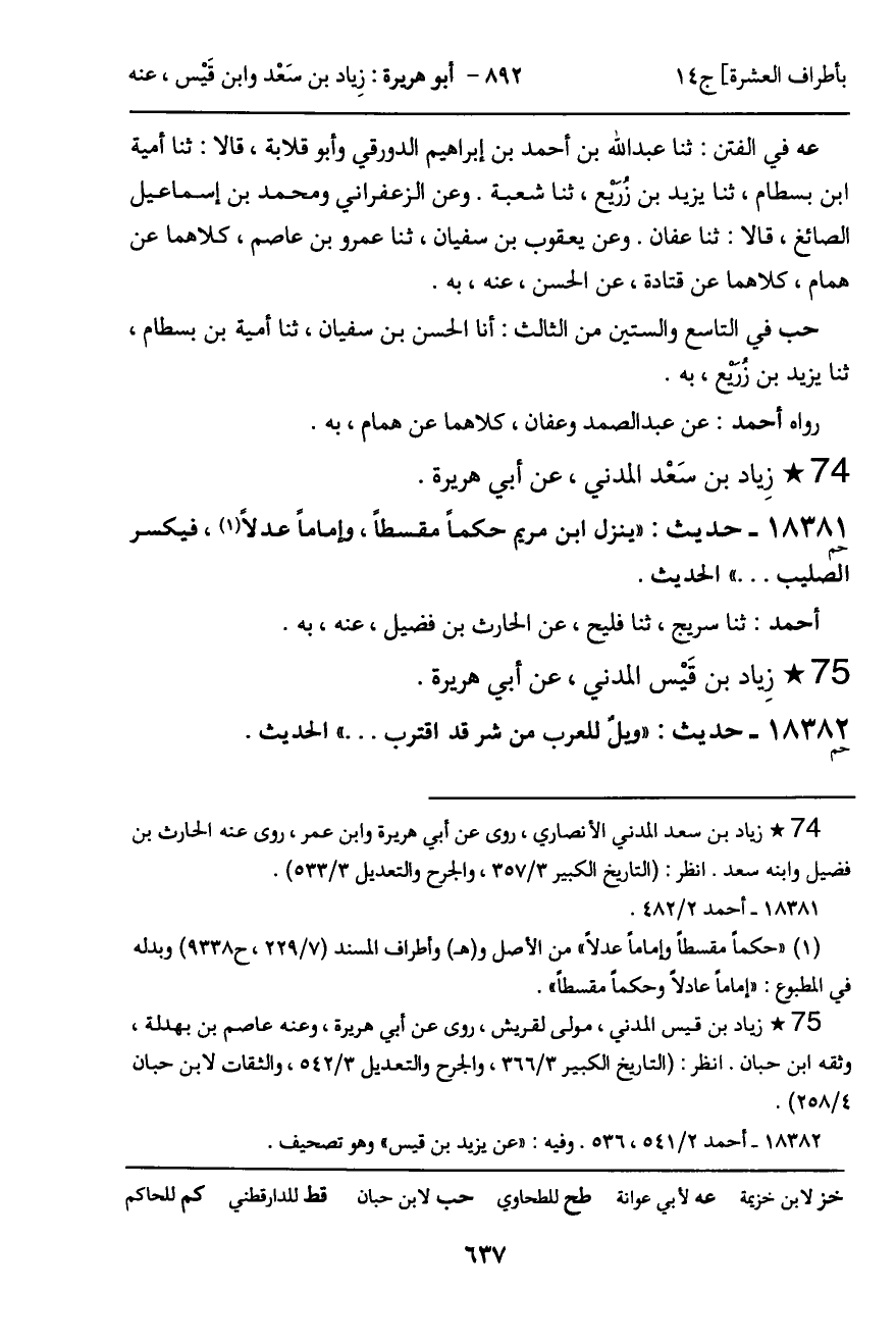 18381 - حديث (حم) : "ينزل ابن مريم حكماً مقسطاً، وإماماً عدلاً، فيكسر الصليب ... " الحديث.