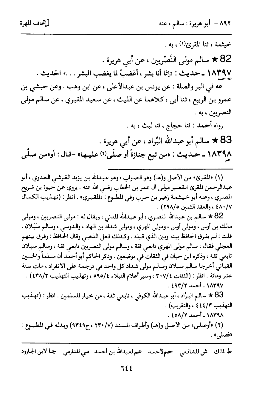 ـ سالم أبو عبد الله البراد، عن أبي هريرة.