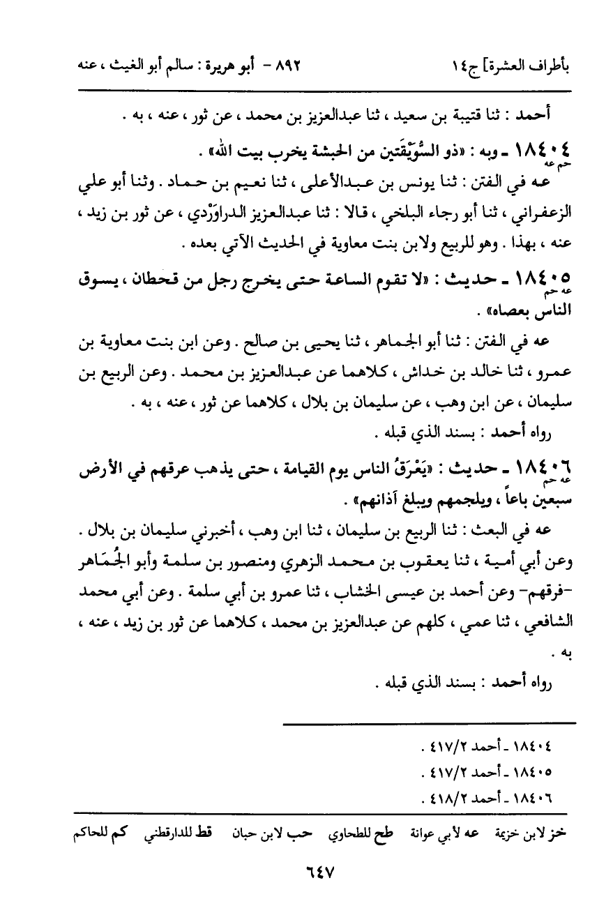 18405 - حديث (عه حم) : "لا تقوم الساعة حتى يخرج رجل من قحطان، يسوق الناس بعصاه".