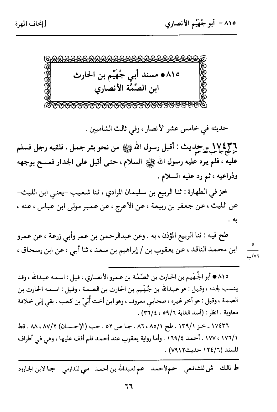 815 ـ مسند أبي جُهَيْم بن الحارث ابن الصِّمَّة الأنصاري