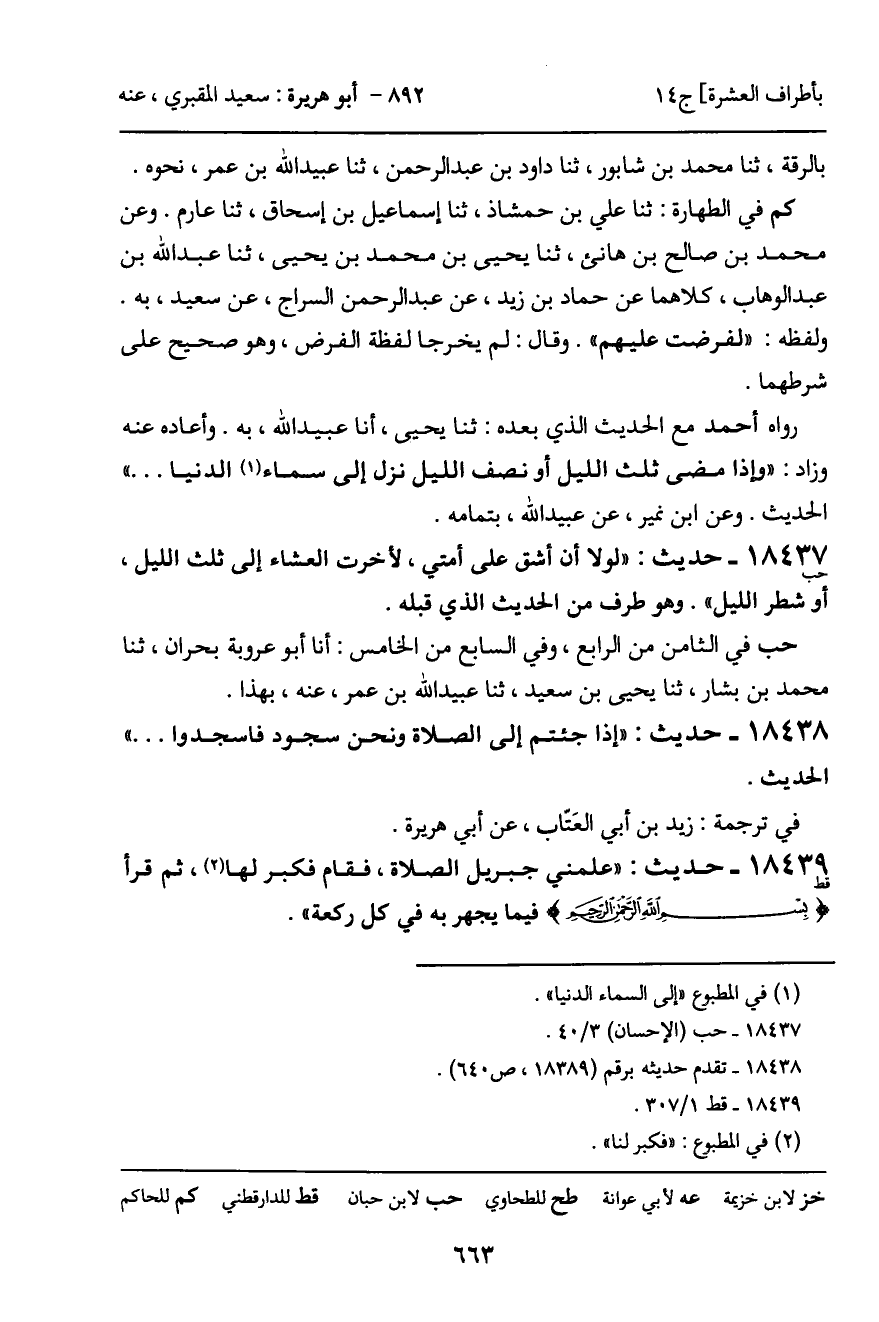 18437 - حديث (حب) : "لولا أن أشق على أمتي، لأخرت العشاء إلى ثلث الليل، أو شطر الليل". وهو طرف من الحديث الذي قبله.