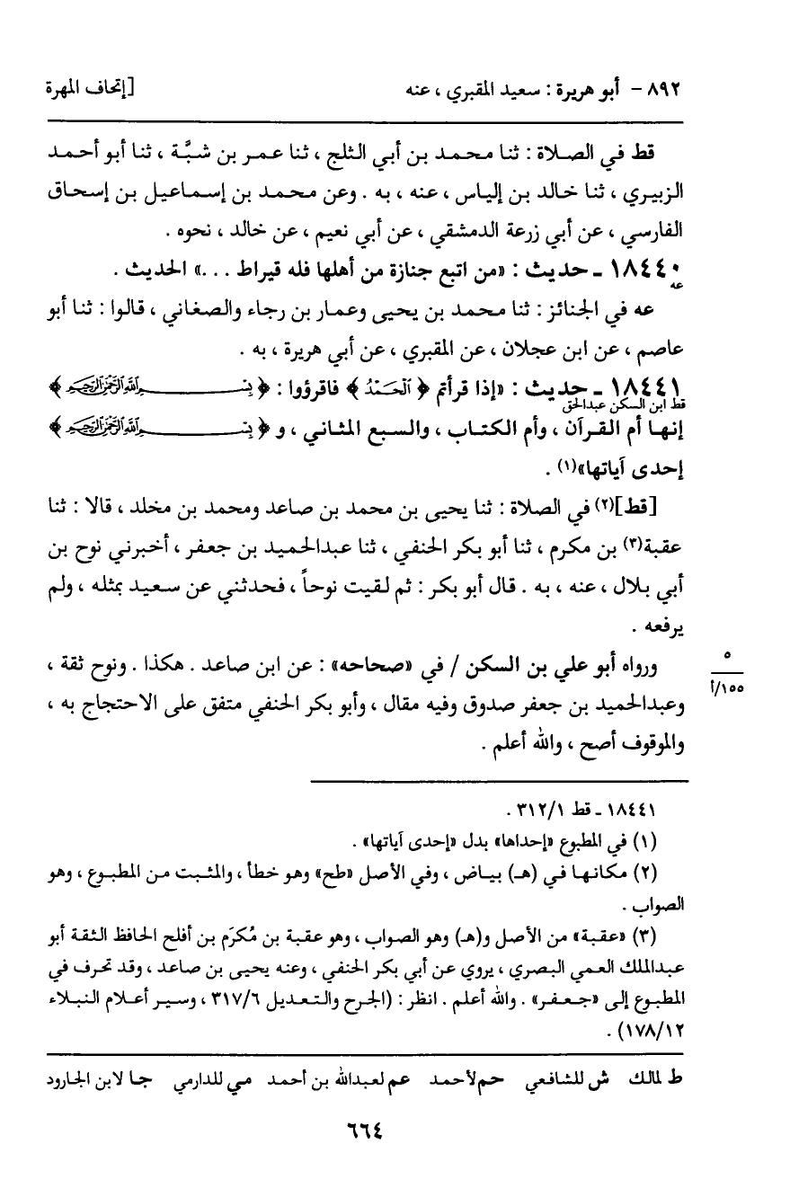 [قط] في الصلاة: ثنا يحيى بن محمد بن صاعد ومحمد بن مخلد، قالا: ثنا عقبة بن مكرم، ثنا أبو بكر الحنفي، ثنا عبد الحميد بن جعفر، أخبرني نوح بن أبي بلال، عنه، به. قال أبو بكر: ثم لقيت نوحاً، فحدثني عن سعيد بمثله، ولم يرفعه.